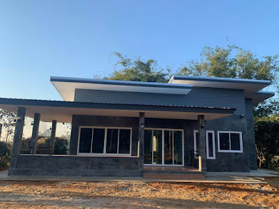 ไอเดียตกแต่งบ้านและบ้านเดี่ยว รามอินทรา บ้านสไตล์โมเดิร์นลอฟท์หลังนี้เป็นบ้านขนาดชั้นเดียว ตัวบ้านมีรูปทรงสี่เหลี่ยมที่ดูทันสมัย ความโดดเด่นของบ้านคือหลังคาทรงเพิงหมาแหงนที่ออกแบบเล่นระดับอย่างสวยงาม ในขณะที่ผนังภายนอกถูกตกแต่งด้วยปูนเปลือยแบบสวยดิบด้วยกลิ่นอายของลอฟท์