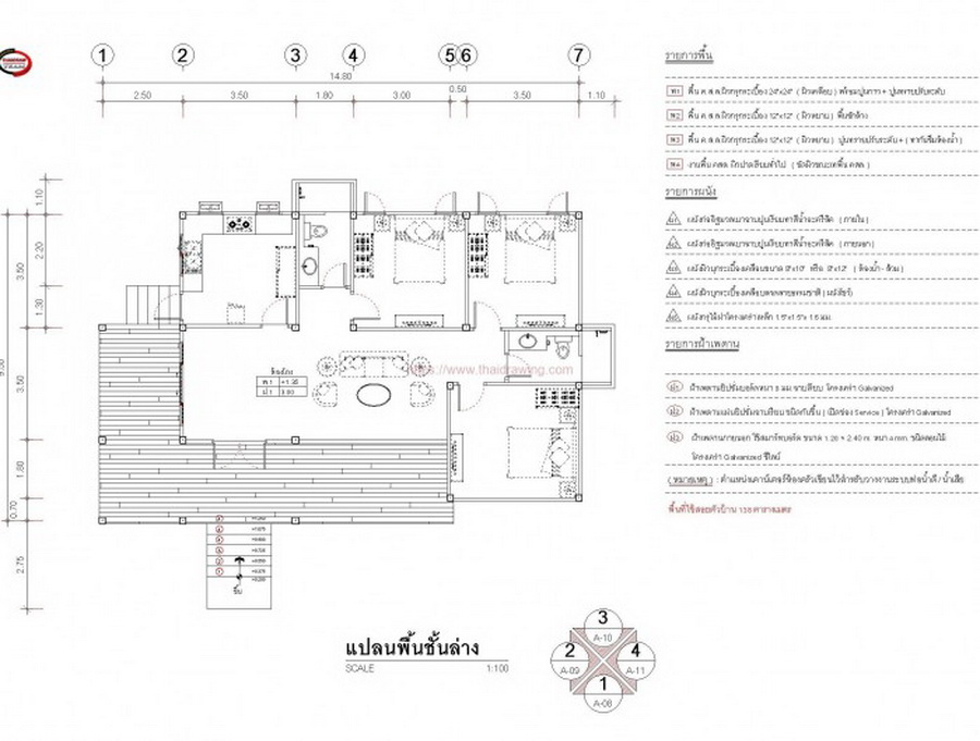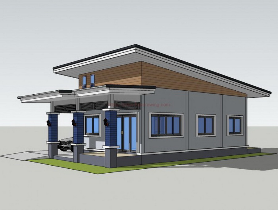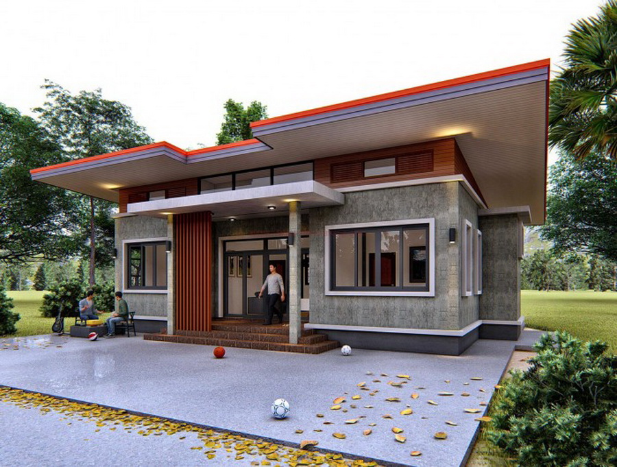 บ้านรูปทรงโมเดิร์นชั้นเดียวหลังนี้ประกอบไปด้วยทั้งหมด 3 ห้องนอน 2 ห้องน้ำ 1 ห้องรับแขก 1 ห้องครัว พร้อมระเบียงพักผ่อน และห้องเฉลียงโปร่งโล่งเพื่อการพักผ่อน