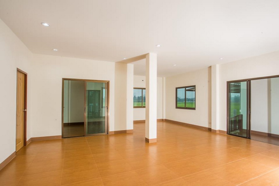 เมื่อเข้ามาภายในบ้านจะเห็นว่ามีการออกแบบให้เป็นผนังสีขาวสว่างตา ซึ่งช่วยให้บ้านดูมีความโอ่โถงและโปร่งโล่งมากขึ้น เช่นเดียวกับการเลือกออกแบบให้ฝ้าเพดานลึกเข้าไป เพื่อให้บริเวณโถงรับแขกดูมีมิติกว่าเดิม