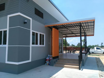 บ้านชั้นเดียวสไตล์โมเดิร์น โทนขาวเทา หลังคาเพิงหมาแหงน