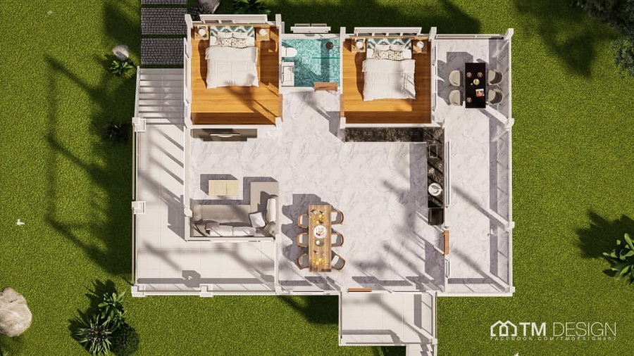 แบบบ้านหลังนี้ภายในบ้านประกอบไปด้วยทั้งหมด 2 ห้องนอน 1 ห้องน้ำ 1 ห้องโถงนั่งเล่น และ 1 ห้องครัว การก่อสร้างบ้านซึงได้รวมวัสดุต่างๆแล้ว อยู่ที่ 650,000 บาท