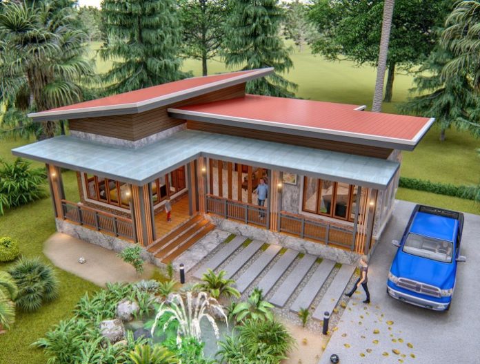 สร้างบ้านชั้นเดียว ทันสมัย ดีไซน์หลังคาเล่นระดับ