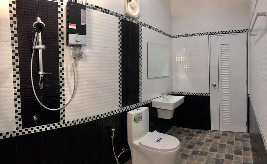 ห้องน้ำเองก็ได้ถูกออกแบบอย่างเรียบง่าย ส่วนภายในตกแต่งด้วยกระเบื้องสีอ่อน พร้อมสิ่งอำนวยความสะดวกไว้อย่างครบครันที่สุด