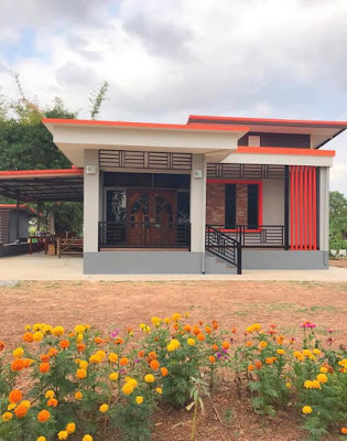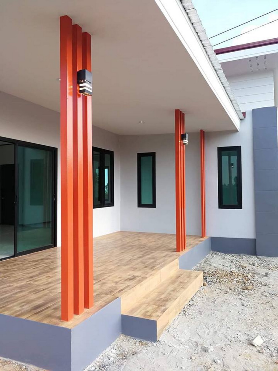ไอเดียตกแต่งบ้านและบ้านเดี่ยว รามอินทรา วันนี้ขอนำเสนอบ้านหลังนี้เป้นบ้านขนาดชั้นเดียว ตัวบ้านออกแบบตกแต่งด้วยสไตล์โมเดิร์น จึงได้ให้บรรยากาศของบ้านที่ดูสวยงามทันสมัย ทางด้านรายละเอียดการออกแบบบ้าน หลังคาของบ้านเองก็เป็นหลังคารูปทรงเพิงหมาแหงน ตัวผนังภายนอกเป็นผนังสีขาว ได้เพิ่มดีเทลด้วยสีม่วง และสีส้ม