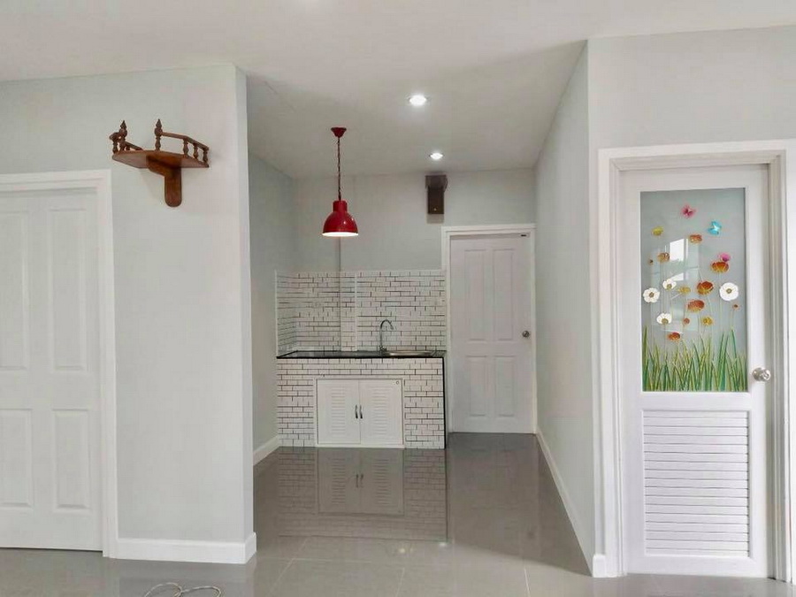 ภายในห้องครัวมีพื้นที่กว้างขวาง และเป็นสัดส่วน ภายในตกแต่งด้วยเคาน์เตอร์ครัวแบบติดผนังรูปทรงตัวแอลในสไตล์โมเดิร์น พร้อมกับสิ่งอำนวยความสะดวกอื่นๆ