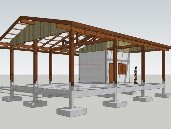 ไอเดียตกแต่งบ้านและบ้านเดี่ยว ราชพฤกษ์ วันนี้ขอนำเสนอบ้านชั้นเดียวยกพื้นสูง ได้ถูกออกแบบเป็นรูปทรงหน้าแคบหลังลึก จึงจะสามารถสร้างไว้บนที่ดินแบบหน้าแคบได้ ตัวผนังภายนอกตกแต่งด้วยโทนสีเทาเรียบง่าย ตัวผนังใต้ฝ้าใช้วัสดุไม้พร้อมติดที่ระบายอากาศใต้หลังคา ช่วยให้ภายในบ้านเย็นสบายและไม่อบอ้าว หลังคาเป็นทรงจั่วโชว์อกไก่และอะเส ซึ่งจะทำให้บ้านดูมีกลิ่นอายชนบทอีกด้วย