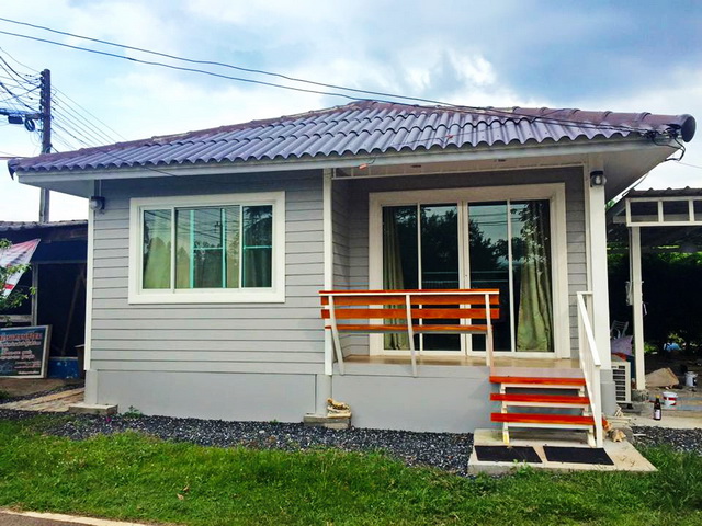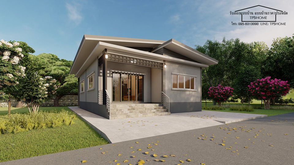 บ้านตกแต่งในสไตล์โมเดิร์นชั้นเดียวหลังนี้ภายในประกอบไปด้วยทั้งหมด มี 2 ห้องนอน 2 ห้องน้ำ 1 ห้องรับแขก 1 ห้องครัว เฉลียงหน้าบ้าน พื้นที่การใช้สอย 79 ตร.ม. โดยงบประมาณในการก่อสร้างอยู่ที่ 850,000 บาท